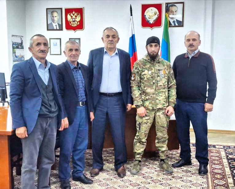 Глава Рутульского района Давуд Сулейманов провел встречу с Сакитом Камазовым, жителем села Цахур, который является участником Специальной военной операции. Сакит прибыл в родной район в краткосрочный отпуск, чтобы повидаться с родными и близкими.