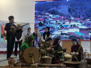 По ходу официальной части мероприятия были представлены музыкальные номера и сценки из жизни наших предков, которые мы должны не забывать и бережно сохранять. Коллектив женской самодеятельности из села Ихрек сыграли сценку обработки шерсти и вязания ниток из нее. Сценка сопровождалась под аккомпанемент старинной музыки и песни.