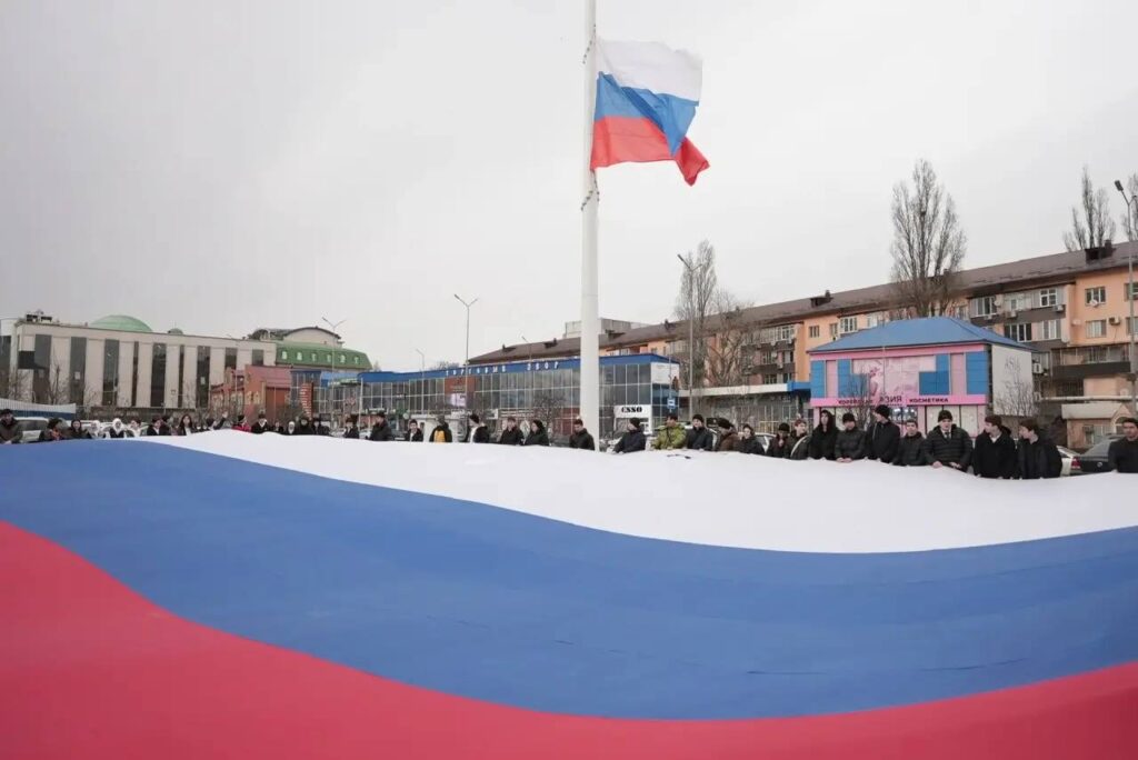 18 марта в Махачкале, на территории исторического парка «Россия – Моя история», состоялось торжественное мероприятие, посвященное 12-й годовщине воссоединения Крыма и Севастополя с Россией. Кульминацией праздника стал масштабный флешмоб, в ходе которого был развернут огромный государственный флаг Российской Федерации.