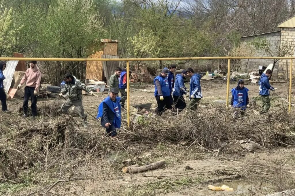 Волонтёры Дербентского районного местного отделения «Единой России» совместно с активистами «Молодой Гвардии» продолжают ликвидацию последствий чрезвычайной ситуации, вызванной прорывом дамбы Геджухского водохранилища. Основные работы сейчас развёрнуты в посёлке Мамедкала и селе Кала.
